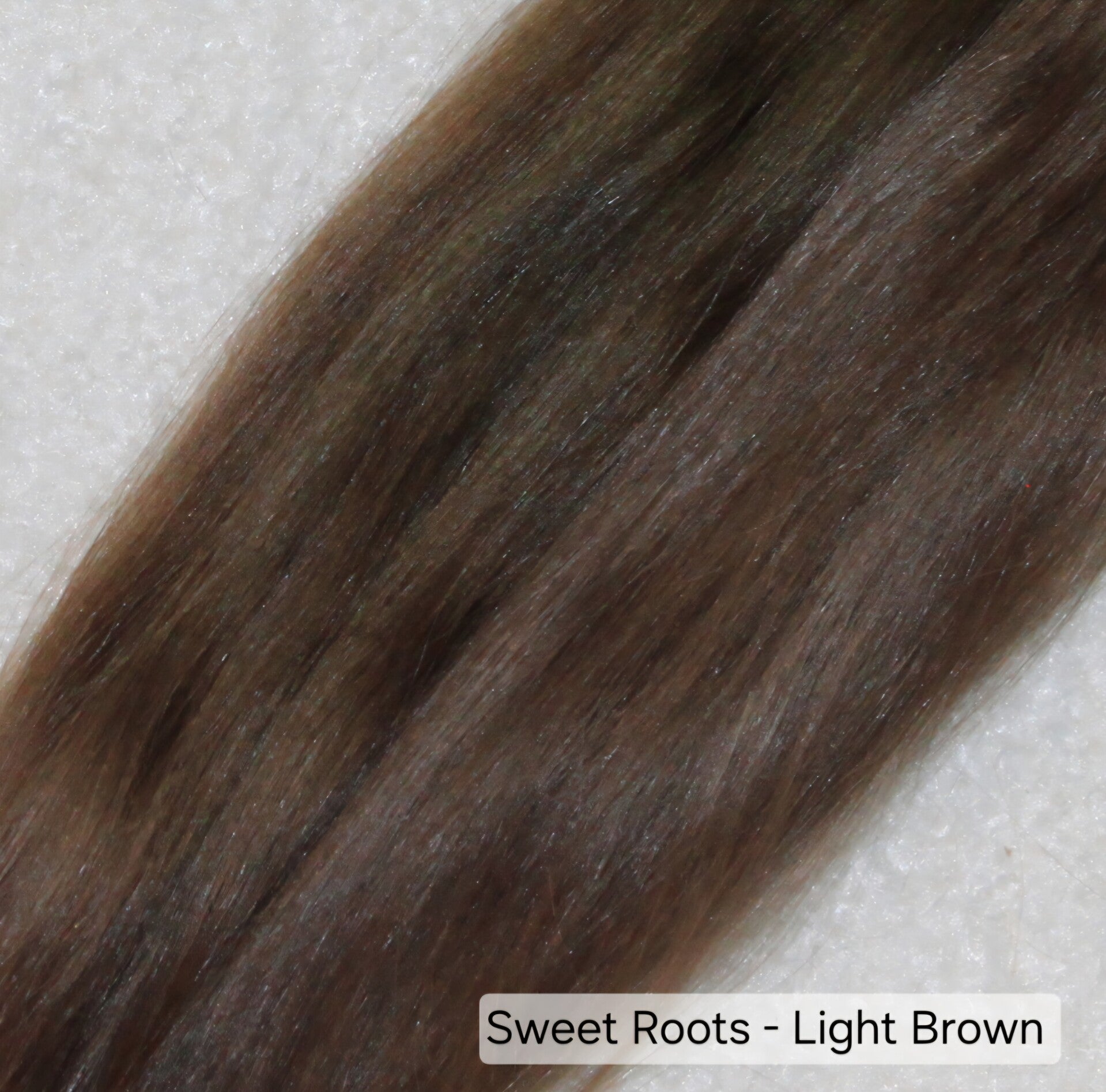 Mohair comes in packs of 14 grams and we currently offer 6 shades; Dark Blonde, Light Brown, Medium Brown, Dark Brown, Deep Dark Brown and Caramel Brown.